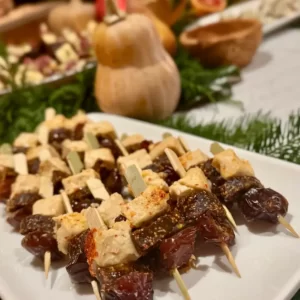 Date, Fig Salami & Sourdough Crouton SkewersSweet • Savory • Mediterranean • Plant-BasedMakes about 30 skewers